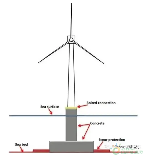 第一座近岸海上风电就是重力式底座,参考了海洋平台的模式,采用混凝土和压载沉底来保证稳性。