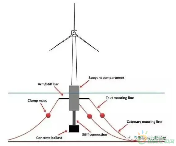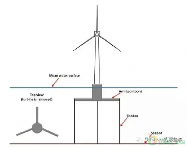 浮动风电参考了海洋平台的设计经验,形式主要有: