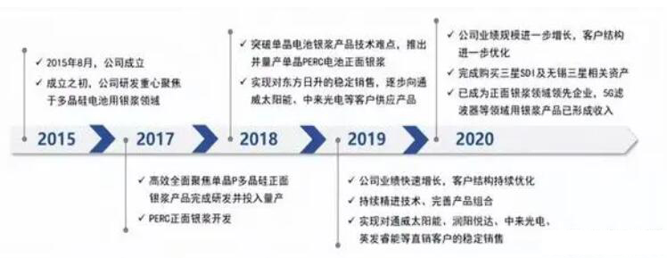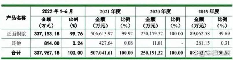据招股书说明书披露,聚和材料自2015年成立以来始终专注于新型电子浆料的研发、生产,目前主要产品为太阳能电池用正面银浆,同时也是公司主要的收入来源。