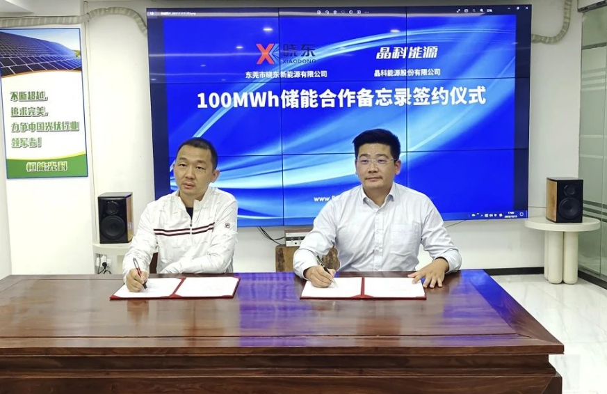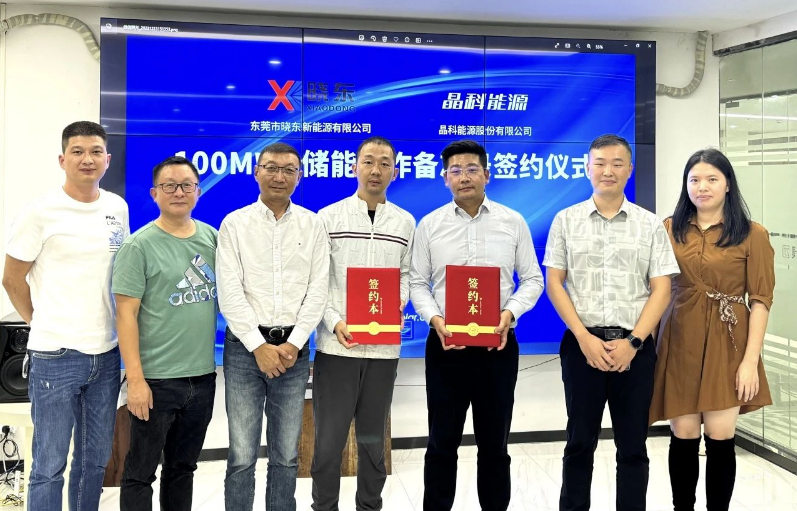 近日,在广东举行的签约仪式上,晶科能源与晓东新能源共同签署了100MWh工商业储能SunGiga合作协议,旨在共同规划未来储能业务的发展方向。签约仪式上,晶科能源新场景事业部总经理江波、南部大区负责人孙涛以及晓东新能源代表李鹏飞一行出席了此次盛会。
