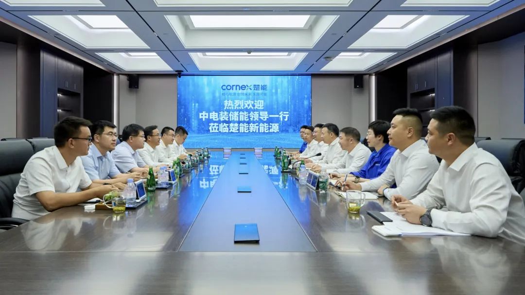 8月20日,中电装储能党委副书记、总经理赵文强一行到楚能新能源股份有限公司(简称楚能新能源)拜访交流,与楚能新能源董事长代德明、总裁黄锋举行会谈,双方围绕储能产业发展、供应链生态建设进行座谈交流。