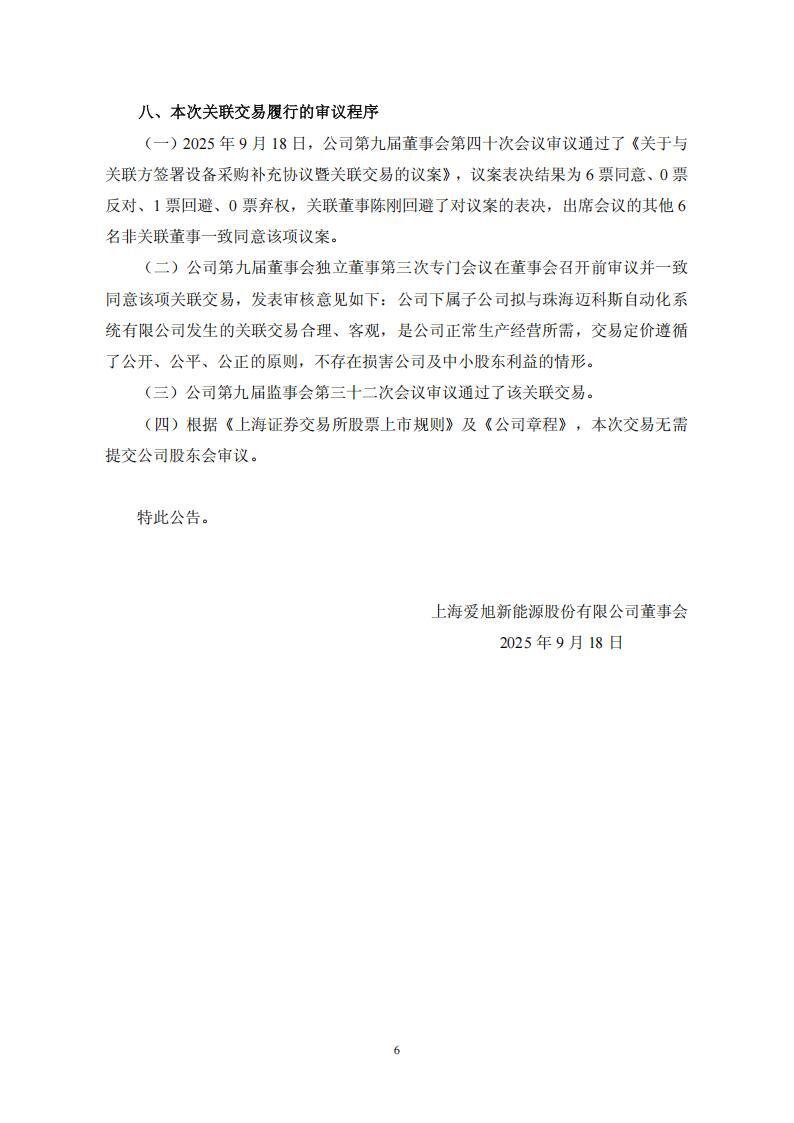 9月19日,爱旭股份发布关于与关联方签署设备采购补充协议暨关联交易的公告。