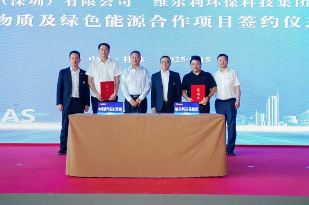 2025年9月15日,在2025中国—东盟建筑科技展上,维尔利环保集团与中燃燃气实业(深圳)有限公司正式签署合作协议。维尔利集团副总裁、生物能源公司董事长周新安,中燃集团副总裁匡晓东等领导出席见证,双方将围绕生物质能源领域展开深度协作,共同响应国家“双碳”目标,推动绿色能源产业升级。