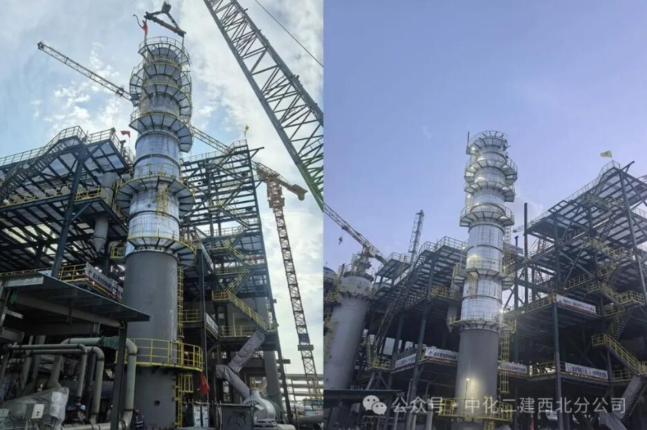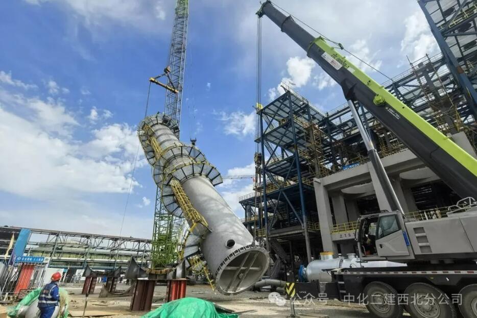 9月30日,由西北分公司承建的中煤陕西能源煤化工二期甲醇合成装置传来捷报 —— 核心设备稳定塔(位号 2151T001)顺利完成吊装作业,以关键工程节点的圆满突破,向国庆致敬献礼。该设备高 36.22 米、直径 3.7 米,净重为 77.5 吨;在地面完成“穿衣戴帽”等工作后,吊装总重量增至 95 吨,对吊装精度与安全管控提出极高要求。