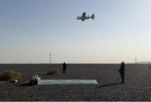 △ 在固定翼无人机起飞前勘测部专业人员严格执行检测流程