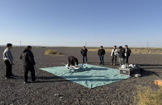 提前部署,多维筹备。该项目现场环境复杂,山区地势起伏明显、气候条件多变,戈壁区域不仅定位导航难度大、风沙天气频发,信号还易受干扰,路林渠及电力线塔区域存在电磁干扰问题,且通行条件较差。为高效完成现场服务任务,有效应对各类突发情况,项目服务团队从三方面做好前期准备工作,一是在资料收集环节,全面搜集当地历史气象数据、地质构造信息及相关政策法规文件;二是在设备准备方面,投入RTK测量仪、旋翼无人机、固定翼无人机等先进设备,为踏勘工作提供技术支撑;三是在人员安排上,精心挑选12名专业人员,将其划分为6个工作小组,确保踏勘工作分工明确、协同高效推进。