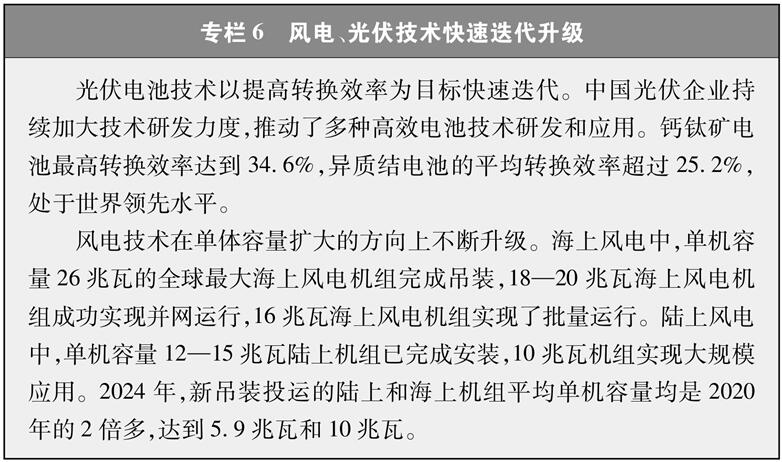 推动风电、光伏发电跨越式发展。中国坚持集中式与分布式并举,加快推进以沙漠、戈壁、荒漠地区为重点的大型风电光伏发电基地建设,推动海上风电规范有序建设,积极推广城镇、农村屋顶光伏,鼓励发展乡村分散式风电。截至2025年8月底,风电、光伏发电装机规模突破16.9亿千瓦,达到2020年的3倍以上,贡献了2020年以来约80%的新增电力装机,风光发电量占比以年均提高2.2个百分点的速度稳步攀上新台阶。