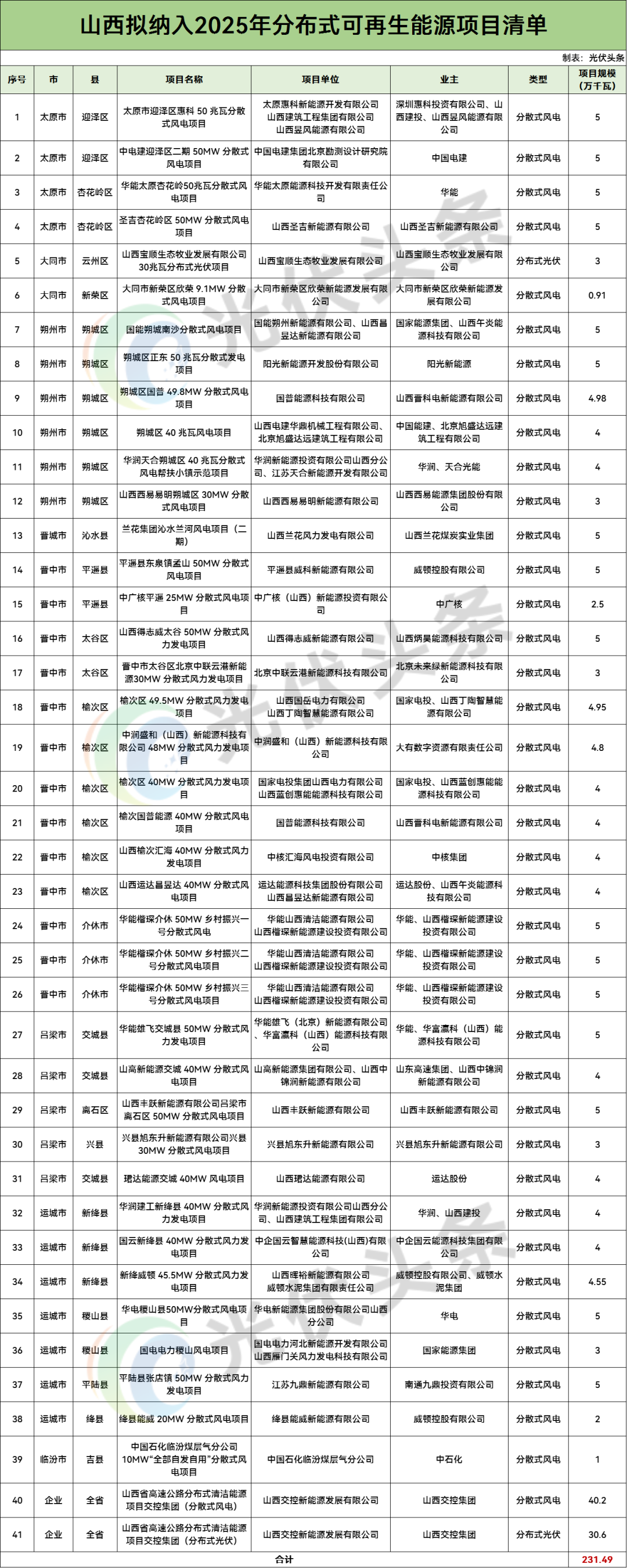 光伏头条获悉,11月20日,山西省能源局发布《关于山西省2025年分布式可再生能源项目评审结果的公示》。