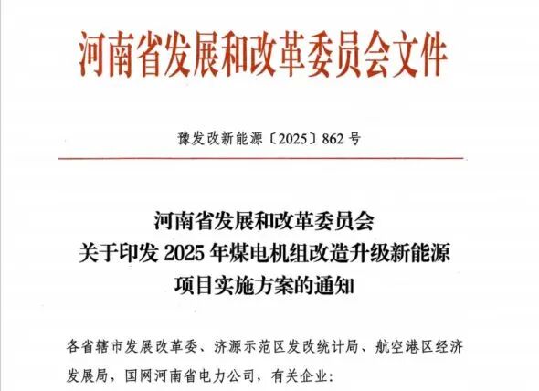 近日,河南省发展和改革委员会发布《关于印发2025年煤电机组改造升级新能源项目实施方案的通知》,本次实施方案中河南公司取得风电建设指标40万千瓦,并协同龙源河南公司10万千瓦。
