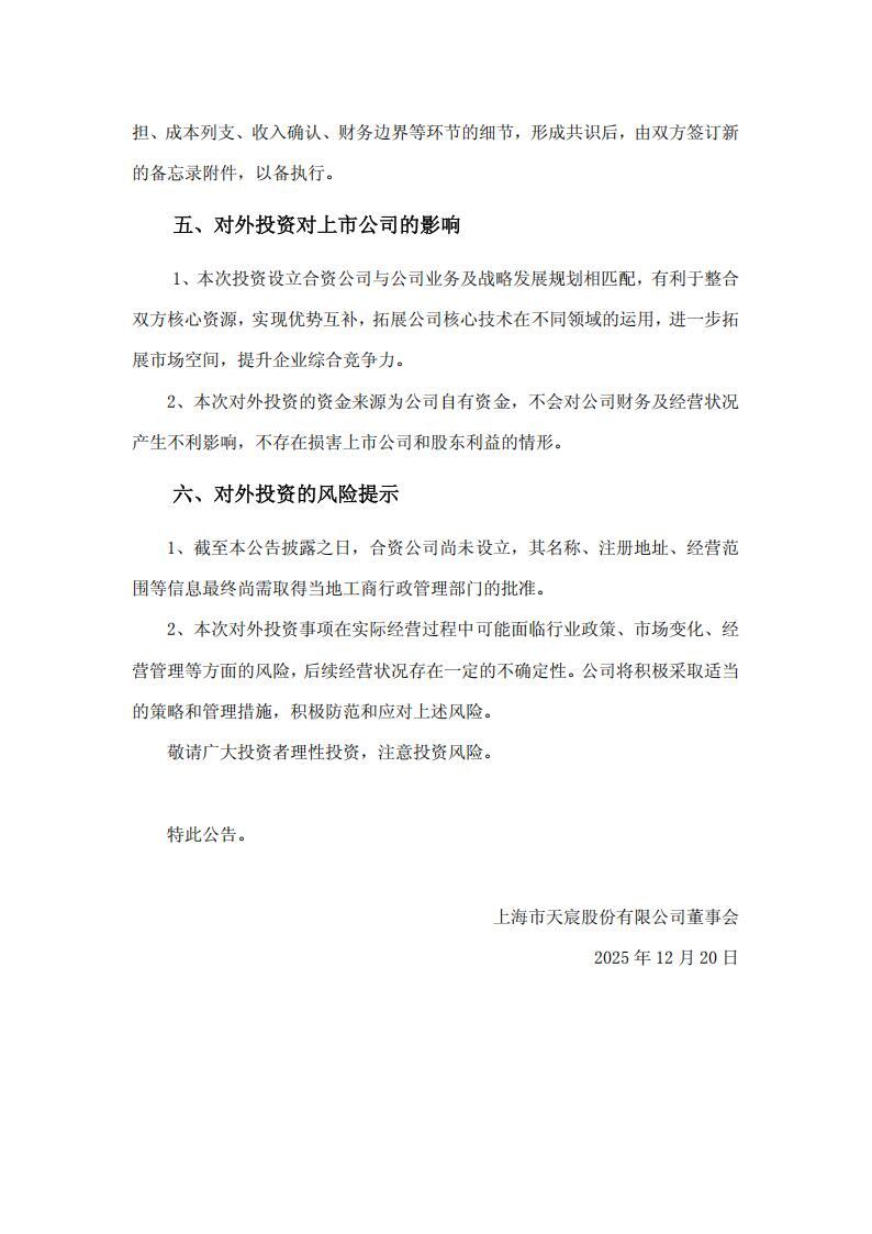 12月20日,天宸股份发布关于全资孙公司对外投资设立合资公司的公告。