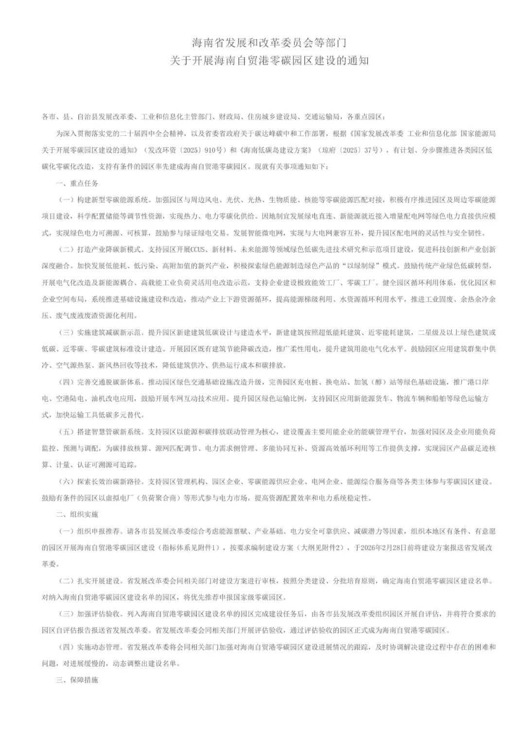 12月19日,海南省发展和改革委员会等部门发布关于开展海南自贸港零碳园区建设的通知。