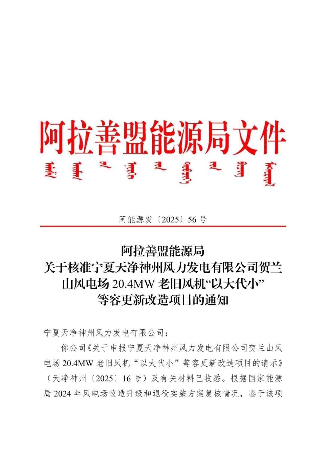 宁夏天净神州风力发电有限公司贺兰山风电场20.4MW老旧风机“以大代小”等容更新改造项目位于内蒙古自治区阿拉善盟阿拉善左旗巴润别立镇境内,项目单位为宁夏天净神州风力发电有限公司,通过技术改造方式,对宁夏天净神州风力发电有限公司贺兰山风电场20.4MW项目24台850kW老旧风机进行等容改造。项目改造容量20.4MW,拆除现有24台850kW老旧风机,等容量新建4台单机容量5MW的风力发电机组,配套建设箱变、检修道路等辅助设施,对原有10kV集电线路进行改造后接入现有110kV升压站。项目总投资为7924万元。