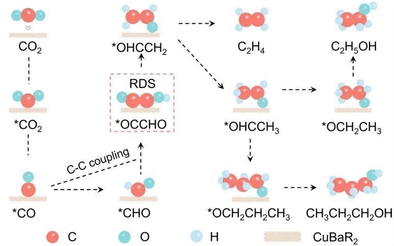 ▲CO2电催化转化为C2+产物的反应机理图