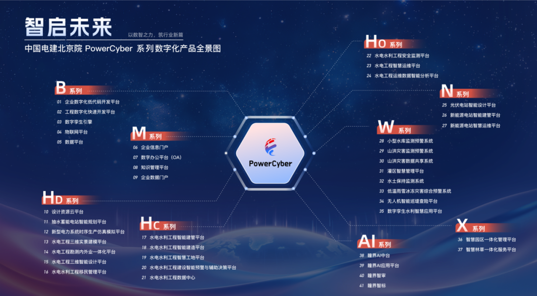 公司将项目能力沉淀为标准化的产品与服务,成功打造了自主知识产权的“PowerCyber”数智化产品品牌,形成了覆盖九大系列、41款产品的完整矩阵。打造“瞳界”AI应用服务平台,标志着工程智能化转型迈入全新阶段。品牌产品在高端市场取得突破,公司首次承接北京市“中关村国家自主创新示范区共性技术平台项目”核心任务,开展抽水蓄能规划设计与数智化共性技术平台建设,标志着从项目承建者向行业技术基础设施构建者的战略跃升。