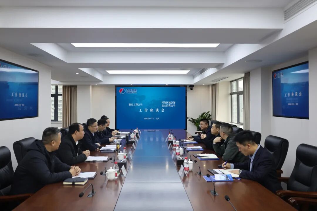 1月7日,重庆电建党委书记、董事长、总经理张喜会见中电建西部区域总部副总经理、中电建西部建设投资有限公司副总经理、中电建重庆投资有限公司法定代表人张增伟一行,双方围绕深化战略合作开展交流座谈。公司党委委员、副总经理王雨参加座谈。