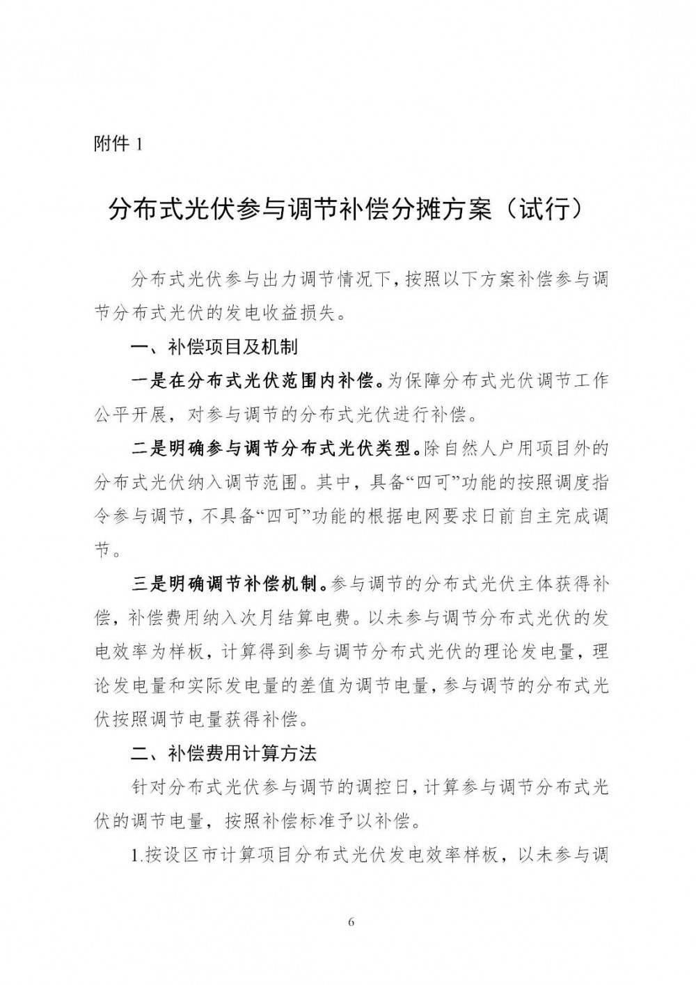 此外,附件《分布式光伏参与调节补偿分摊方案(试行)》明确了补偿项目及机制。
